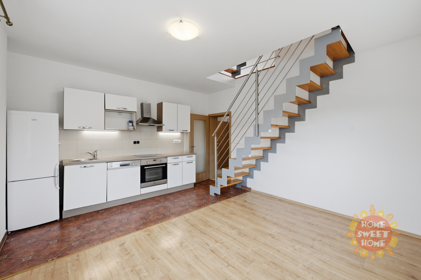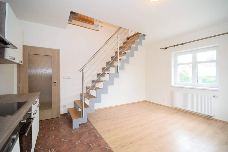Nabízíme k pronájmu světlý, nezařízený mezonetový byt 3+kk o celkové ploše 68 m2 s balkonem a prostornou terasou o velikosti 30 m2, situovaný v rezidenční lokalitě Praha 8 - Kobylisy, ulice Hovorčovická. Byt se nachází ve 3.nadzemním podlaží cihlového domu bez výtahu. Dům je zateplený. Byt byl kolaudovaný v roce 2018. V dolním patře se nachází vstupní chodba, pokoj s kuchyňskou linkou, ložnice s balkonem a koupelna. V horním patře je pokoj a schodiště do 5. patra kde je vstup na terasu s krásným výhledem do okolí. Byt je vybavený kuchyňskou linkou s vestavěnými spotřebiči (lednice s mrazákem, elektrický sporák se sklokeramickou deskou). V koupelně je k dispozici vana a toaleta. Vytápění je zajištěno centrálním plynovým topením. Příjemné a moderní bydlení v klidné části Prahy s rychlou dostupností do centra. Lokalita nabízí veškerou občanskou vybavenost - školy, školky, restaurace, supermarkety, lékárnu a další služby v docházkové vzdálenosti. Výborná dopravní dostupnost - cca 10 minut na stanici metra Kobylisy (linka C) nebo na autobusové zastávky. Byt je dostupný od dubna k pronájmu. Pro více informací či prohlídku, kontaktuje makléře.