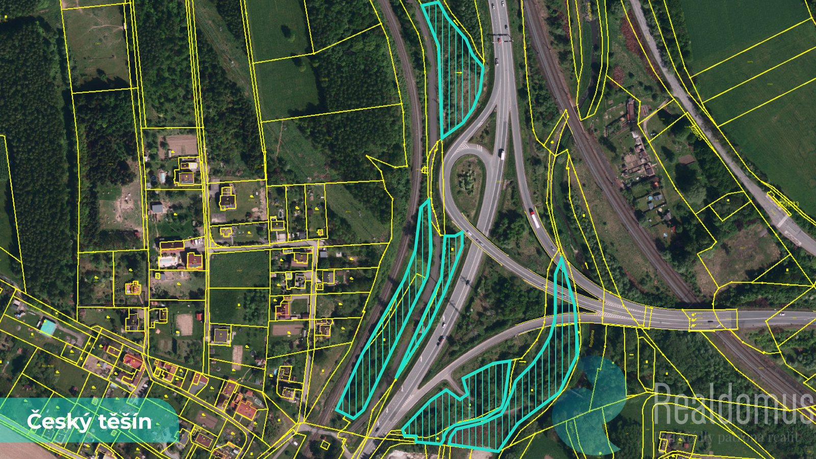 Nabízíme ke koupi spoluvlastnický podíl 1/2 na souboru pozemků o celkové výměře 16 662 m2, zapsaných na LV 4973 v katastrálním území Český Těšín, okres Karviná. Pozemky se nacházejí v jižní části Českého Těšína, v blízkosti dopravního uzlu Mosty - Ropice, u dálnice D48 a železniční tratě. Jedná se o investiční pozemky v území s inženýrskými sítěmi a dopravní infrastrukturou. Součástí pozemků jsou i plochy vedené jako trvalý travní porost a vodní plocha. Uvedené výměry jsou orientační. V případě více zájemců bude nemovitost prodána nejlepší nabídce a majitel si vyhrazuje právo vybrat kupujícího na základě jim zvolených kritérií. Veškeré zveřejněné údaje v tomto inzerátu mají pouze informativní charakter.
