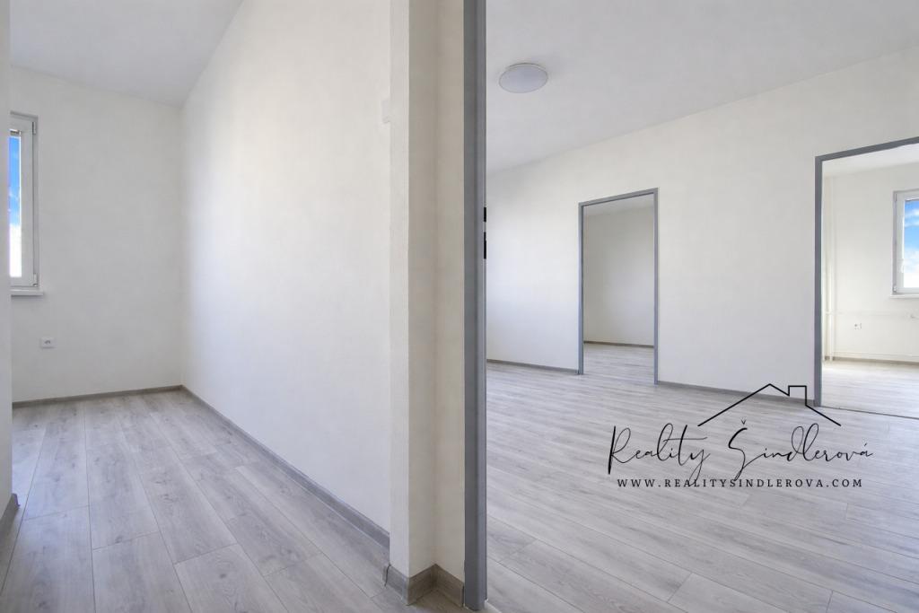 Nabízíme k prodeji družstevní byt (převod členských práv a povinností) o dispozici 3 + 1 s balkónem, o výměře 62,20 m2 v 6.patře (7.NP) panelového domu na ulici Jasínkova v Přerově. Byt prošel celkovou a velmi zdařilou rekonstrukcí (r. 2025 / 2026), je velmi prostorný, světlý, v jemných tónech. Rozvody vody a odpadů v kuchyni jsou tvořeny tak, aby si kupující mohli vytvořit kuchyňskou linku dle svého vkusu. Jednotka se skládá z: kuchyň: 8,6 m² pokoj: 18,4 m² pokoj: 12,4 m² pokoj: 11,4 m² předsíň: 5,5 m² spíž: 0,5 m² koupelna: 2,1 m² WC: 0,9 m² sklep I: 1,0 m² sklep II: 1,4 m² lodžie: 3,8 m² (nezapočítává se do celkové podlahové plochy bytu) Celková výměra podlahové plochy bytu s příslušenstvím je: 62,2 m². Opravy a rekonstrukce byly následující: Jádro: * Jádro - kovový rám, OSB deska, sádrokarton * Koupelna a WC samostatné * V koupelně vana (ne sprch. kout) Elektřina: * Elektřina kombinovaná - hliník / měď * Nová pojistková skříň, 1 x 25 A Omítky: * Omítky hladké * Podhled na WC Vytápění, odpady, ohřev vody: * Vytápění ústřední dálkové * Topné těleso - litinové radiátory * Ohřev vody dálkově Kanalizace obecní * Odpady v plastu * Stoupačky v plastu Podlahy: * Vinyl, dlažba * Podlahy byly v celém bytě srovnány Dveře, zárubně, okna: * Okna plastová * Interiérové dveře dřevěné * Ocelové zárubně, ošetřeny novým lakem Vlastnictví bytu - převod / správa domu * Byt se aktuálně nabízí jako družstevní, tedy se nabízí k prodeji převod družstevního podílu. Byt je možné převést do osobního vlastnictví, anuita i veškeré úvěry spojené s bytem jsou splaceny. * Správa domu: Stavební bytové družstvo Přerov Informace k hospodaření domu (úvěry na rekonstrukce, fond oprav, aj.) a mnoho dalších informací Vám rádi poskytneme osobně při prohlídce nemovitosti. Výhodné financování nemovitosti v případě zájmu zajistíme. Budeme se na Vás těšit při prohlídce nemovitosti.