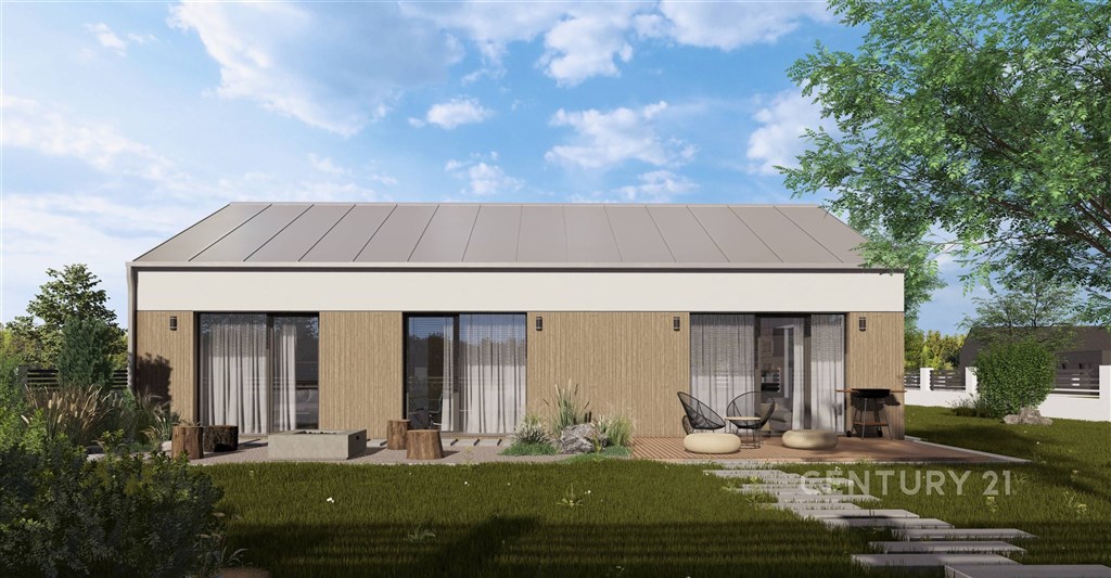 Ve spolupráci s majitelem pozemku nabízíme kompletní výstavbu moderní dřevostavby RD o dispozici 4+kk v klidné okrajové části obce Hlinsko pod Hostýnem. Dům o užitné ploše 101 m2 bude postaven na pozemku o rozloze cca 1200 m2, který přináší dostatek soukromí a prostoru pro relaxaci plus pozemek cca 360 m2 pro zahrádkáření. Dispozice nabízí obývací pokoj s kuchyní, halu, tři pokoje, koupelnu, WC a technickou místnost. Životní prostor domu je optimálně rozvržen pro komfortní rodinný život, kde každý člen rodiny nalezne své místo. Nabídková cena zahrnuje: pozemkovou parcelu pro RD o výměře cca 1200 m2 a sousední zahradu cca 360 m2 vhodnou pro sad, kompletní výstavbu RD napojenou na IS se základní terénní úpravou, kompletní vnitřní vybavení sanitárními předměty, podlahové krytiny, dveře, obklady a dlažby, tepelné čerpadlo s podlahovým rozvodem vytápění, projekt a vyřízení stavebního povolení. Kuchyňská linka není součástí dodávky Stavba kombinuje moderní technologické prvky s ekologickým přístupem a respektuje moderní trend minimalismu, nicméně nepřehlíží ani funkčnost každodenního života. Jak je zvykem u novostaveb, dům disponuje pouze nejnutnějšími technickými prvky bez zbytečného přetváření. Využijte nabídku výstavby moderního energeticky úsporného bydlení v klidné oblasti s výhledem na Hostýnské vrchy.