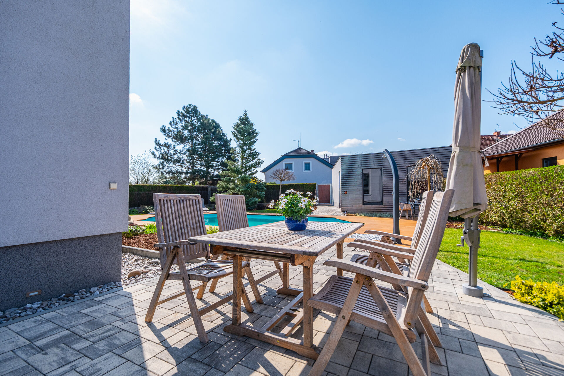 Představte si místo, kde se potkává naprostý komfort moderního bydlení, promyšlený prostor a klidná lokalita na dosah města. Přesně takový je tento samostatný rodinný dům v Mladé Boleslavi - Čejetičkách, v ulici U Letiště. Dům, který prošel kompletní a rozsáhlou rekonstrukcí, je dnes jako nový a čeká na svého majitele, který ocení kvalitu, prostor a nadstandardní provedení v každém detailu. Dominantou domu je velkorysý obytný prostor s kuchyní na míru od Hanáka s pracovní deskou z umělého kamene - místo, kde se přirozeně setkává rodina i přátelé. Z kuchyně vstoupíte přímo na jižně orientovanou terasu, která vás zve k ranní kávě i večernímu posezení. Dispozice domu je řešena jako dvougenerační: - v patře naleznete hlavní bytovou jednotku o dispozici 4+kk se šatnou a čtyřmi prostornými, světlými místnostmi (výměra prostoru celkem 122,9m2) - v suterénu je samostatná jednotka 2+kk s jídelním prostorem a navazujícími místnostmi, které mohou sloužit jako pracovna, herna, wellness zóna nebo prostor pro vaše koníčky (výměra prostoru celkem 121,2m2). Technicky je dům připraven bez kompromisů: - podlahové vytápění v patře + nový plynový kotel - klimatizace v celém domě (chlazení i přitápění) - plastová okna s hliníkovým exteriérem a venkovními žaluziemi (komfort i bezpečí) - kompletně nové rozvody vody a elektřiny - zateplení 15 cm + nová fasáda - hliníkové vstupní dveře - u garáže nádrž na dešťovou vodu o objemu 5m³ Bazén o objemu 70 m³ (11 × 5,5 m) s hloubkou až 2,5 m pod skokanským prknem je doslova soukromým letním resortem. Nová fólie, osvětlení i čistička, okolní terasa z kvalitního WPC (Gutta strong) - tady si léto opravdu užijete. Praktické detaily, které dělají rozdíl: - garáž postavená před 10 lety, dvoupodlažní, s výtahem a plně podsklepená - absolutní ráj pro kutily, sběratele, milovníky aut nebo třeba vlastní fitness či dílnu - parkování pro 4 vozy za elektrickou branou - venkovní zásuvka 380 V (ideální pro elektroauto) - 3× nezámrzný venkovní kohout Celková užitná plocha domu činí 244 m2, pozemek má 827 m2 a je kompletně oplocen. Lokalita Čejetičky je ideální pro ty, kteří chtějí klidné bydlení s rychlou dostupností do města. V docházkové či krátké dojezdové vzdálenosti najdete přírodu, sportovní vyžití i základní služby. Kompletní občanská vybavenost je pak v Mladá Boleslav - školy, školky, obchody, nemocnice, restaurace i pracovní příležitosti. Výborná je také dopravní dostupnost - rychlé napojení na dálnici směr Praha, kam dojedete cca do 25ti minut i Liberec. Tahle nemovitost není „jen dům“. Je to místo, kde můžete okamžitě začít žít - bez kompromisů, bez dalších investic, přesně tak, jak jste si to možná dlouho představovali. A upřímně? Pokud hledáte kvalitní, prostorné a reprezentativní bydlení v okolí Mladé Boleslavi… tohle je nabídka, která by vám rozhodně neměla uniknout. Těšíme se na vás.