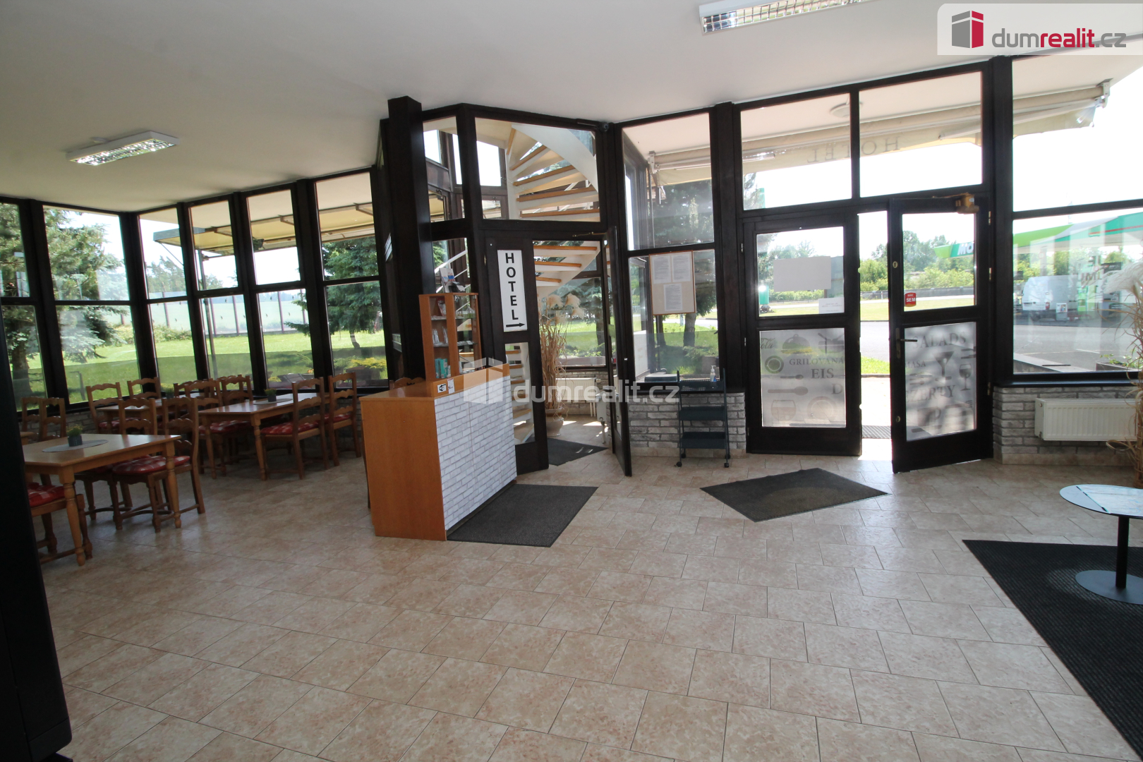 Dumrealit.cz Vám zprostředkuje koupi zavedeného hotelu s restaurací přímo na sjezdu z dálnice D6 směr Odrava u čerpací stanice MOL, kde je dostatek parkování s velkým pozemkem 3880 m2. Budova dle architektonického návrhu postavená před 25 lety je ve výborném stavu, je z červených pálených cihel a fasáda je zateplená. Elektroinstalace je již v mědi, jsou zde 3 fáze, 220 V, 380 V. Budova je připojena na veškeré inženýrské sítě včetně kanalizace, elektřiny, plynu i vodovodního řadu. Vytápění a ohřev teplé vody zajišťuje plynový kotel. V přízemí je restaurace s kapacitou pro 50 - 80 osob uvnitř, 50 osob na terase, dále je zde bar, vybavená kuchyně, sociální zařízení pro personál, pro hosty, dále sklad, výlevka. V přízemí je dále také samostatný byt 2+kk, který je přístupný ze zadní strany samostatným vchodem. V prvním patře je 8 dvoulůžkových pokojů každý s vlastní koupelnou se sprchou toaletou a umyvadlem, které jsou plně vybavené nábytkem, minilednicí, TV apod., nyní jsou pokoje dlouhodobě obsazené. Ve druhém patře je podkrovní prostor, který slouží jako sklad, dále je zde pokoj, který je možný využít na ubytování, v současnosti se nepoužívá. Objekt je podsklepený, je zde technické zázemí a velká suchá místnost, cca 50 m2, která se dá samostatně pronajímat, nyní také slouží jako sklad (opravovaly se zde kola). Ze zadní části budovy je únikové schodiště. Taktéž je v zadní části domu samostatná terasa, další parkoviště. Rozlehlý pozemek nabízí možnost variabilního vybudování prostoru pro parkování. Parkování je také možné na benzínce, u objektu je další velké parkoviště, které je možné si pronajímat. Místo je svou polohou ideální pro vybudování funkčního dlouhodobého podnikání. Cena zahrnuje provizi RK a právní servis. Ev. číslo: 656091. Energetický štítek: G (50 kWh/m2/rok).